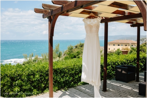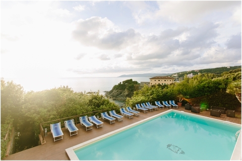 She chose Tuscany, in Italy, for being a country where she lived for 2 years and a place that she loves very much. The city where the wedding would be held is named CASTIGLIONCELLO and the hotel picked for reception and hosting had a wonderful view to Liguria sea.