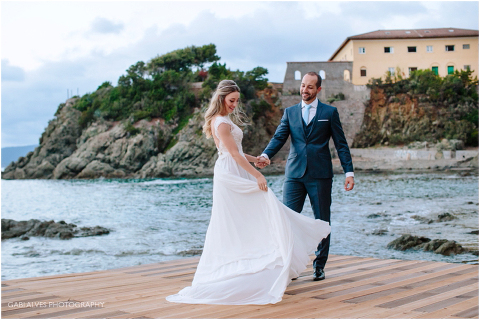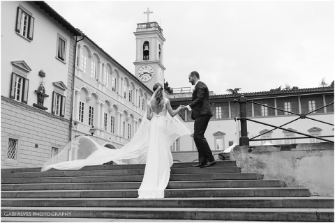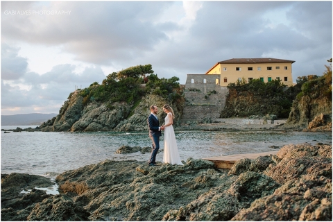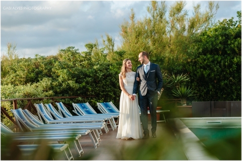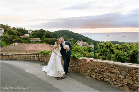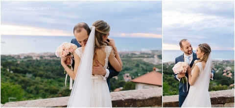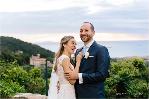 Viajamos para Itália 1 dia antes do casamento e por sorte ficamos no mesmo hotel dos noivos e convidados. Tínhamos planejado fazer um ensaio informal do casal para aproveitar aquela paisagem maravilhosa com o pôr do sol e pelo motivo que no dia do casamento a previsÀo era de 90% de chuva.