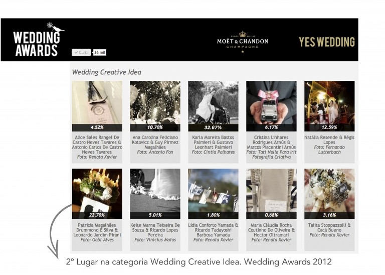 2º LUGAR NO JÚRI POPULAR DO WEDDING AWARDS, NA CATEGORIA WEDDING CREATIVE IDEA